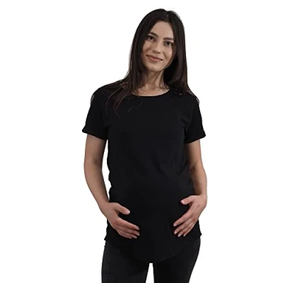 Mamatoto Women Maternity T Shirt 100% Cotton Soft Round Neck Short Sleeve Top Black