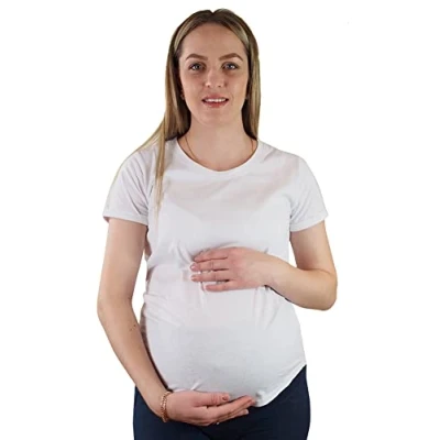 Mamatoto Women Maternity T Shirt 100% Cotton Soft Round Neck Short Sleeve Top White