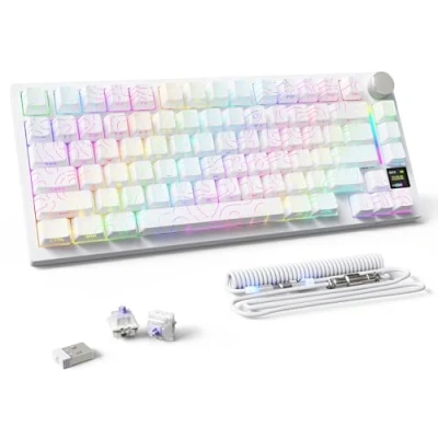 MAMBASNAKE Attack Shark X820 Ultra Gaming Mechanical Keyboard with TFT Screen & Knob, LIGHTSYNC RGB Chroma 75% TKL Wireless BT/2.4G/ Wired Gasket Hot Swap Keyboard, Coiled Cable Gift Switch/White