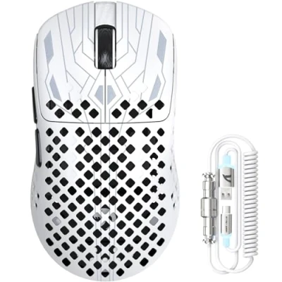【Cutting-Edge Precision Sensor】Experience ultimate accuracy with the custom PAW3395PRO optical sensor. Achieve a staggering 40,000 DPI for pixel-perfect tracking, ensuring every movement is translated with unmatched speed and precision for competitive gaming and professional work. 【Ultra-Light & Incredibly Durable Build】Weighing a mere 41±3 grams, the M2 is engineered for speed and agility. Its molded carbon fiber construction offers exceptional pressure resistance and wear-proof durability, capable of withstanding accidental impacts while maintaining its featherlight feel. 【High-Performance Core & Blazing Speed】Powered by the flagship-grade Broadcom BK52820 microcontroller and boasting a 650 IPS tracking speed with 50G acceleration, the M2 delivers ultra-responsive, real-time processing. Enjoy flawless performance with zero lag, even during the fastest, most intense maneuvers. 【Tri-Mode Connectivity & Universal Compatibility】Seamlessly switch between ultra-fast 2.4GHz wireless, power-saving Bluetooth, and dependable wired modes. With 1000Hz polling rate in wired/2.4G modes and broad support for Windows, macOS, and Android, it’s the perfect versatile companion for all your devices. 【Engineered for Extreme Longevity】Built to last, the M2 features mechanical micro-switches rated for over 100 million clicks and a premium Fengshi Weiqi encoder rated for 2 million cycles. Enjoy crisp, tactile feedback and unwavering reliability through years of heavy use. 【Intelligent Cloud-Driven Software】Take control with our AI-enhanced cloud driver. It auto-recognizes your device upon connection for instant setup. Prefer local control? The downloadable driver offers deep customization for buttons, macros, DPI, and performance tuning to match your style. 【Ergonomic Design with Cool-Touch Coating】Crafted for comfort, the ergonomic shape fits naturally in your hand. The unique ice-cool coating provides a secure, comfortable grip that resists sweat and slippage, keeping you comfortable and in control during marathon sessions. 【Fast Charging & Stunning Aesthetics】The included MAMBASNAKE C06 ULTRA paracord charging cable isn’t just for power. It features radiant RGB lighting, ensures faster data transmission, and minimizes latency while charging the robust 250mAh battery, blending high performance with striking style. 【Complete Customization Kit】Personalize your grip and glide. The package includes DIY anti-slip grips and premium pure PTFE (Teflon) feet. Easily apply them to enhance comfort, control, and achieve smoother, faster glides across any surface. 【The Complete Pro-Grade Package】The MAMBASNAKE M2 is the definitive all-in-one gaming mouse. It combines top-tier components, a robust tri-mode connection, intelligent software, and a comfort-focused design into one ultra-lightweight, durable package, ready to dominate any game or task.