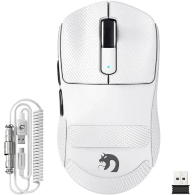 MAMBASNAKE M3 39g SUPERLIGHT Wireless Gaming Mouse with Coiled Cable, PixArt PAW3395PRO Sensor, Up to 40000 DPI, BT/2.4G Wireless/Wired, 200Hrs Battery, Dual Driver, for PC/Xbox/PS/Mac (White)