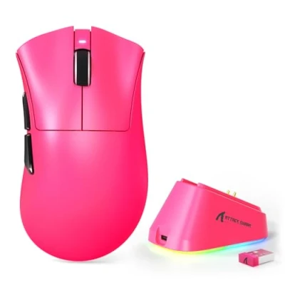 MAMBASNAKE x ATTACK SHARK V3PRO Wireless Gaming Mouse with Magnetic Charging Dock, PAW3311 Sensor, BT/2.4G/USB C, 62g Lightweight, 500mAh, 25000 DPI LIGHTSPEED Gamer Office Mice for PC/Mac Berry Red