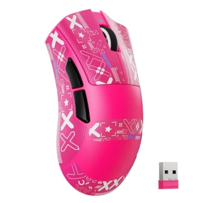 【Flagship Dual-Core, Precise Control】This gaming mouse features a Broadcom custom BK52820 flagship main control chip, ensuring stable and smooth operation with low latency and low power consumption. Paired with a PixArt 3311 optical sensor, it supports precise tracking up to 25000 DPI and 40G acceleration, providing rapid and accurate responses to every command, whether for gaming or intensive office work. 【65g Lightweight Design, Perfect for M&L Hands】Expertly crafted for medium to large hands, this mouse features a full and comfortable right-handed split design, perfectly unified with an ultra-lightweight body of approximately 65g (±3g). Meticulously optimized to ensure substantial filling and supportive contact with the palm, it significantly reduces wrist strain. Whether during frequent movements or extended periods of continuous use, it maintains agile and effortless control. 【Triple-Mode Connectivity, Worry-Free Battery Life】Supports 2.4G wireless/bluetooth/wired connection modes, easily matching various devices such as computers, laptops, and tablets. Maintaining a 1000Hz polling rate even in 2.4G wireless mode, with a response time as low as 1 millisecond, it offers zero-latency operation. A built-in 500mAh high-capacity lithium battery provides excellent battery life, freeing you from battery worries. 【100 Million Clicks Service life】Utilizing upgraded microswitches, they offer a crisp actuation feel, rapid rebound, and a lifespan exceeding 100 million clicks, ensuring exceptional durability. Paired with high-precision encoder, the scroll wheel operates smoothly and precisely, with clear tactile feedback, ensuring stable and reliable operation with every click and scroll. 【Intelligent Web Driver】Supports intelligent web driver, simply plug in your device to automatically recognize and load your personalized configuration. Independent driver downloads are also available for more flexible and convenient settings. Making every use as you wish, efficient and user-friendly.