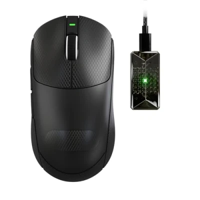 【PixArt 3950MAX Sensor, Ultra-Fast Response】This wireless gaming mouse equipped with a PixArt 3950 MAX sensor, up to 42,000 DPI and supporting 50-degree precision adjustment; upgraded Nordic 54L15 main control chip, achieving a button latency as low as 0.163ms; supports 8K wired/wireless polling rate, ensuring e-sports-grade precise control. 【800mAh Battery & 59g Ultra-Light】This rechargeable mouse features a built-in 800mAh high-capacity battery, providing over 800 hours of battery life; the precisely optimized body weighs only about 59 grams, and its comfortable design, specifically tailored for medium to large hands, ensures comfortable and burden-free use even during extended periods. 【Tri-Mode Connectivity & Web Driver】Supports wired, Bluetooth, and 2.4G wireless tri-mode connectivity, compatible with multiple devices; equipped with a smart cloud driver that automatically identifies devices, and also allows for downloading independent drivers for easy personalized settings and macro programming. 【Precise Control & Durable】X8Ultimate mouse utilizes upgraded optical microswitches, achieving an ultra-long lifespan of over 100 million clicks and faster trigger response. Features enhanced control with double-layered feet, ensuring absolute precision in rolling and movement. 【Detail Upgrade】Comes with a stylish transparent 8K light receiver as standard, with 60G acceleration for fast response. It is both beautiful and practical, easy to store and easy to identify; the mouse surface is covered with a nano ice-feel coating, which is non-slip and sweat-proof, providing a long-lasting dry and stable grip.