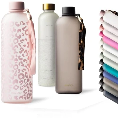 Timeless Design - It's our passion to create beautiful products. Our big water bottles feature unique styles, clean lines & simple elegance. A perfect small and light accessory that will draw everyone's attention. Premium Quality - Precisely manufactured from thermoplastic quality plastic Tritan Copolyester, our drinking bottles are neutral in taste and odour & robust. All materials used are suitable for food contact in accordance with EU regulations. Drink Enough - Was never so easy! With your new MAMEIDO gym water bottle you always have enough water or other drinks with you. The practical time markings on the back serves as a drinking reminder - a quick glance at the watch shows you whether you've had enough to drink. Stylish Accessory - 9 cool shades in a semi-transparent frosted glass look, elegantly lacquered screw caps & matching fashionable carrying straps. It doesn't matter whether you're doing sports, in the office/at home or on the go - with MAMEIDO you make the difference! Easy to clean - Our water bottle can be cleaned effortlessly with a bottle brush and remains durable and hygienic. The lid and hand strap can be easily removed and cleaned separately by hand.