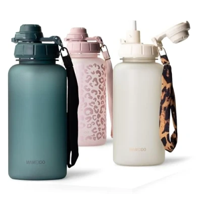 MAMEIDO Water Bottle with Straw & Time Markings 1 l, Leakproof Tritan Sports Bottle, Drinks BPA free, Gym (Ocean Bloom)