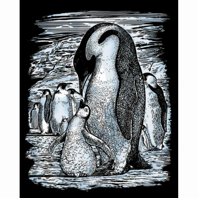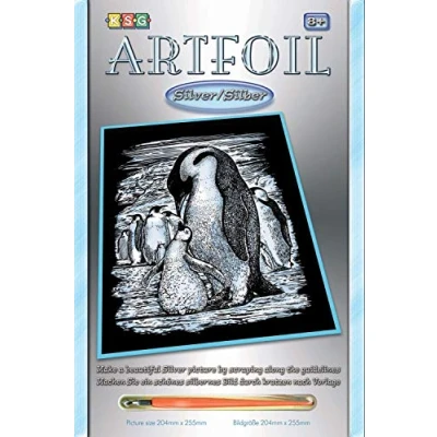 Mammut Spiel & Geschenk 0609 Silver Pinguine, ca. 25,5 x 20,4 cm Artfoil, Animal Motif, Penguin, Complete Picture, Knife and Instructions, Scraper, Scratch Set for Children from 8 Years, Mittel