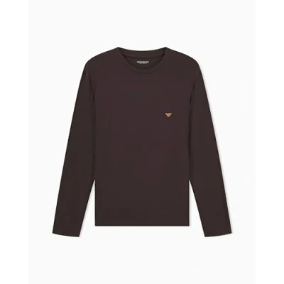 Man's Soft Modal Long Sleeve Crew Neck T Shirt Brown M Fitted FIT