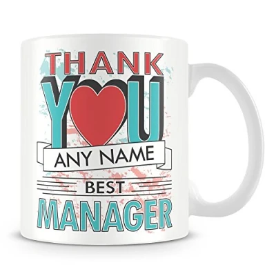 Manager Thank You Mug Personalised Cup Gift Customise with Name Blue