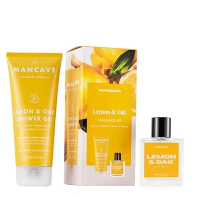 ManCave Lemon & Oak Men's Fragrance Gift Set, 50ml Eau de Toilette, 200ml Shower Gel, Natural Perfume for him, present idea him