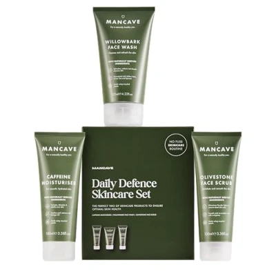 COMPLETE 3 STEP SKINCARE ROUTINE: The Originals Skincare Gift Set is a comprehensive collection of grooming essentials designed to enhance your daily routine. This set includes a variety of high-quality products that will leave you feeling refreshed, revitalised, and ready to take on the day. Included in this set: Original Moisturiser 100ml, Willowbark Face Wash 125ml and Olivestone Face Scrub 100ml PREMIUM PERFROMANCE SKINCARE FORMULATIONS: Each item in this set is carefully formulated with top-notch ingredients to provide exceptional results. From the energizing shower gel to the nourishing hair styling product and the hydrating face wash, every product is designed to meet the needs of the modern man and leave you feeling confident and well-groomed. THE PERFECT GIFT FOR MEN: Whether you're treating yourself or looking for a thoughtful gift for the special men in your life, the ManCave 20472 Originals Gift Set is an excellent choice. Presented in a stylish gift box, it's perfect for birthdays, holidays, or any occasion that calls for a luxurious and practical grooming set. NATURAL ALTERNATIVE FOR SALYCILLIC ACID: The Willowbark Face Wash Infused with Willowbark extract (a natural alternative to Salicylic Acid), known for its exfoliating and clarifying properties, this face wash helps to gently exfoliate dead skin cells and promote a smoother, more refined texture. Experience the rejuvenating benefits of a deep cleanse. PLASTIC FREE OUTER PACKAGING: All the products in this gift set are cruelty-free and suitable for vegans, ensuring that you can enjoy a guilt-free grooming experience. All bottles are made using Post-consumer Recycled Plastics and the set packaging is made from sustainably sources cardboard which can be easily recycled.