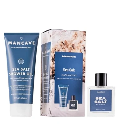 ManCave Sea Salt Men's Fragrance Gift Set, 50ml Eau de Toilette, 200ml Shower Gel, Marine Citrus, Men Perfume Set for him, Present idea him