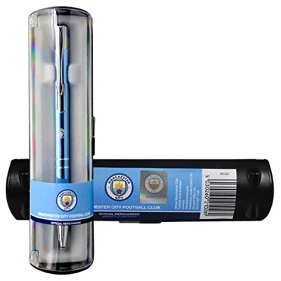 This Manchester City Pen is an executive ball point pen. The pen features printed club crest and writes in blue ink. It comes in a see through plastic box. This pen is an official licensed product.
