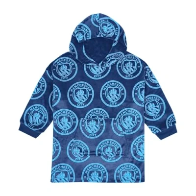 MANCHESTER City FC Reversible Fleece Hoodie For Kids Boys Oversized Hooded Lounge Gown Soft Blanket Man Football Gift One Size Fits All Age 7 13 Years Blue