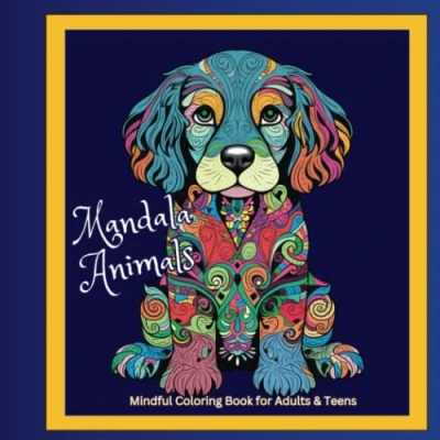 Mandala Animals Mindful Coloring Book for Adults & Teens: 50 Animal Designs Mindfulness and Stress Relief with Farm Animals, Wildlife, Puppies Kittens