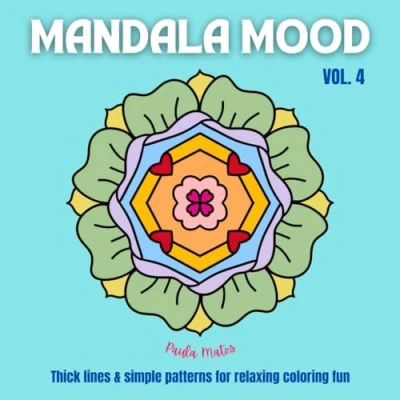 Mandala Mood Vol. 4 Coloring book with 40 unique hand drawn mandalas for adults, seniors, kids: Thick lines & simple patterns relaxed fun (Mandala Books Volume 1 4)