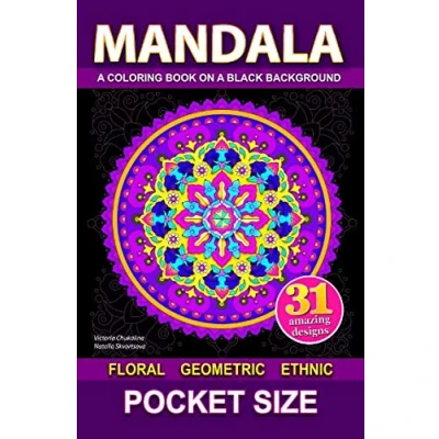 Mandala pocket size coloring book on a black background: Stress relief for adults (Pocket books)