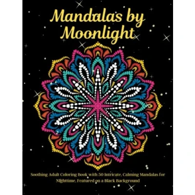Mandalas by Moonlight: Soothing Adult Coloring Book with 50 Intricate, Calming for Nighttime, Featured on a Black Background