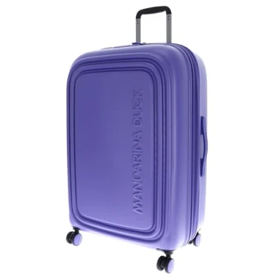 Linea iconica di Mandarina Duck in policarbonato, con linee morbide e volume compatto. Presenta 4 ru doppie ruote logate tono su tono e TSA lock integrato nella parte superiore per un'apertura facilitata, trolley ststem telescopico e organizzazione interna con rete apribile tramite zip.