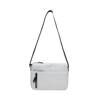 Functional and lightweight shoulder bag with a sporty-chic look, made of shiny nylon with faux leather details. Metal accessories, custom pullers and the precious metallic logo complete the look. It features a large outer zip pocket and a second pocket designed for smaller items. The interior is individually decorated with practical pockets.