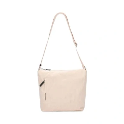 Medium sized corduroy shoulder bag with internal accessories for small items and zipped pockets and with adjustable ribbon shoulder strap.