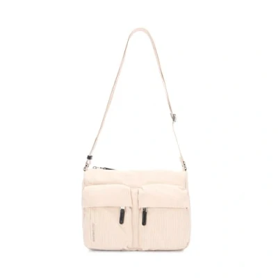 Functional and lightweight shoulder bag with a sporty-chic look, made of corduroy and equipped with double external zip pockets, while inside it is equipped with pockets for small items.