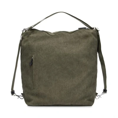 Corduroy shoulder bag that can be converted into a backpack with a simple gesture. Functional and lightweight with a sporty-chic look with nterni equipped for small items and with internal zipped pockets, metal accessories, custom pullers and adjustable ribbon straps.