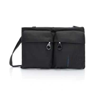 Small MD20 shoulder bag, made of Mitrix, historic Mandarina Duck material, flat, with two front pockets making it contemporary and comfortable for everyday use.