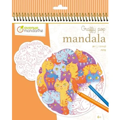 Mandarine Avenue GY142C A Graffy pop Colouring book 36 pages Pre cut Mandalas From age 6 PELE MELE CATS Children's Creative and Leisure Activity DIY