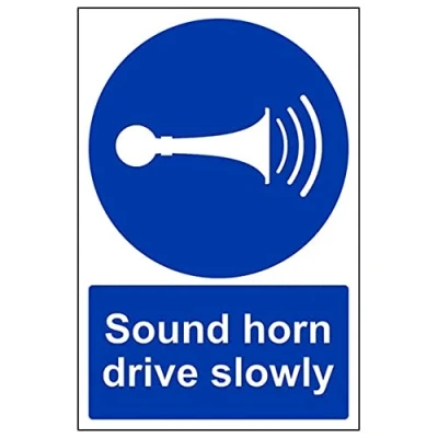 Mandatory General Sound Horn Drive Slowly 200 X 300mm Restickable Safety Sign