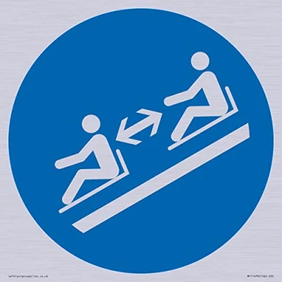 M052 : Keep distance between toboggans This sign is made from vinyl silver sticker S20 square Sign Text: