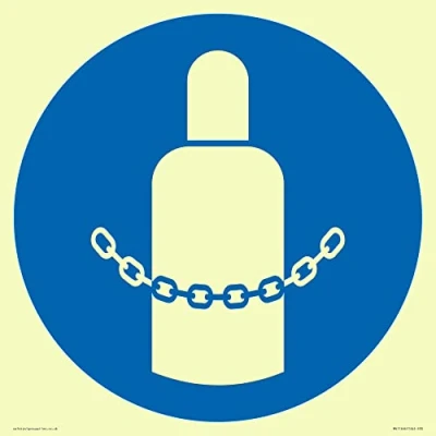 M046 : Secure gas cylinders This sign is made from plastic semi-rigid photoluminescent S30 square Sign Text: