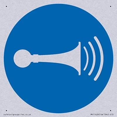 M029 : Sound horn This sign is made from plastic semi-rigid 1mm Comes with3mm Corner Holes. 1mm thin plastic sign, can be screwed, stuck with adhesive, or attached with cable ties. Not suitable for hanging. S10 square Sign Text: