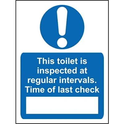 Mandatory toilet signs This toilet is inspected at regular intervals Time of last check Safety sign 1.2mm Rigid plastic 200mm x 150mm Digitally printed and laminated for extra durability Drill and screw in position or use double sided tape to mount onto suitable surface., Manufacturer: KPCM Display