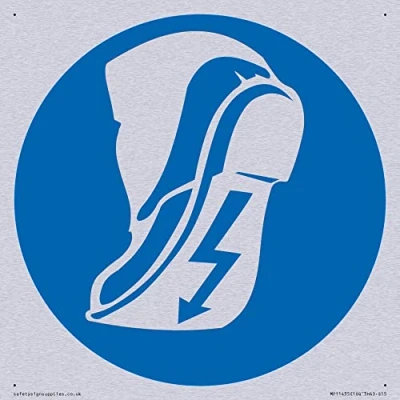M032 : Wear anti-static footwear This sign is made from satin silver aluminium Comes with3mm Corner Holes. S15 square Sign Text: