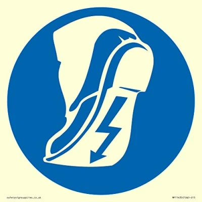 M032 : Wear anti-static footwear This sign is made from vinyl photoluminescent sticker S15 square Sign Text: