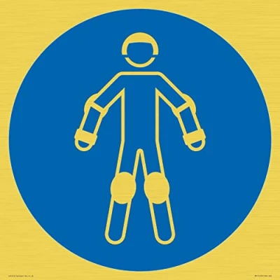 M049 : Wear protective roller sport equipment This sign is made from vinyl gold sticker Gold metal effect sticker for flat, clean surfaces. Not for rough, plastic, or dusty surfaces. S40 square Sign Text: