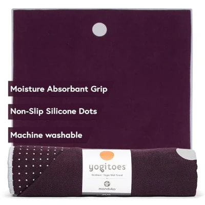 Manduka Yogitoes Yoga Towel for Mat, Non Slip and Quick Dry Hot with Rubber Bottom Grip Dots,Thin Lightweight, 71 Inches, Indulge