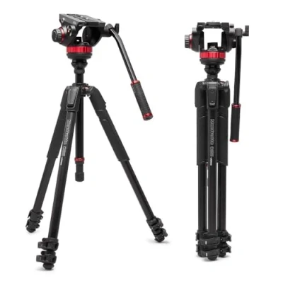 Manfrotto 055 Video Tripod w/502 Fluid Head, Aluminium, Professional Heavy Duty System, with Levelling Column, Lever Lock, Camera Stand, for DSLR/Mirrorless Cameras, Camcorders