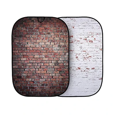 Manfrotto Urban Collapsible 1.5m x 2.1m (5' 7') Classic Red / Distressed White Brick, 2 in 1 background, Backdrop, Double Sided, Portable, Reversible Portraits, Pop up LL LB5706