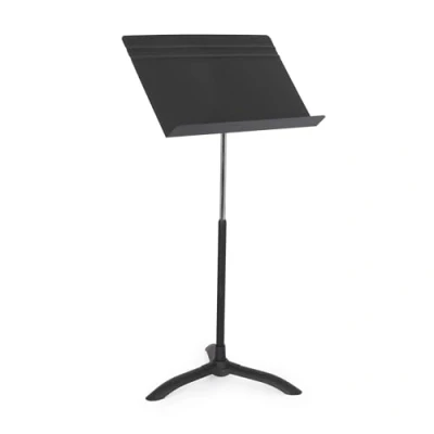A shorter version of the classic symphony stand Ideal for stage bands, guitarists, cellists and younger students Knob-free height and angle adjustment Heavy-gauge all-steel welded base provides excellent stability Large but lightweight solid aluminium desk holds 4kg of music