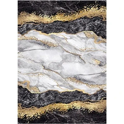 MANI TEXTILE TPS_GOLD_BLACK_120 Rug, Polyester, Black, 120 x 180 cm