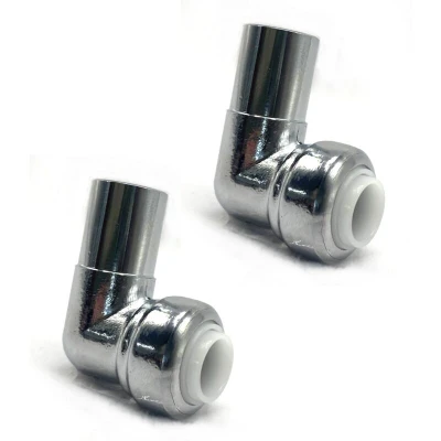 General description These 90 Degree Push Fit Radiator Angled Valves are designed to fit any standard 1/2 - 15mm valves, making them versatile for use with straight, angled, and corner valves. They are also available with a 10mm pipe reducer, providing a neat solution for converting pipe sizes from 15mm to 10mm with a simple push fit connection. Technical specifications Size: 15mm to 15mm Material: Nickel plated brass Type: Push Fit Compatibility: Suitable for both copper and plastic pipework What's included x2 90 Degree Push Fit Radiator Angled Valves