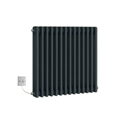 Manissa Electric 3 Column Anthracite Traditional 600h x 425w Radiator with PTC Element Old Cast Iron Type School