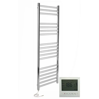 General description These designer heated towel rails are constructed from 304 grade stainless steel, ensuring durability and resistance to rust even in damp bathroom conditions. With a polished mirror-like finish and brackets mounted on the uprights, they provide a high-end look that complements any bathroom decor while maximizing space for hanging towels. The air vent and blanking plugs are discreetly mounted on the rear of the uprights for a sleek appearance. For added peace of mind, these heated towel warmers come with a 10-year guarantee. Technical specifications Material: 304 grade Stainless steel Finish: Polished Upright diameter: 32mm Crossbar diameter: 22mm Heat Source: Electric Guarantee: 10 years on towel rail, 2 years on element Fixings included Usage Unlike traditional electric elements that use resistance wire, this towel rail utilizes PTC elements made from ceramic stones. It operates at full power until reaching an operating temperature of 65°C, after which the power