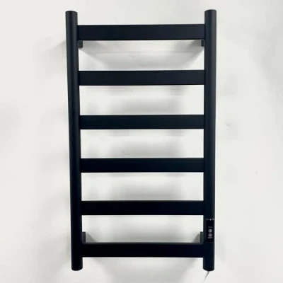 ManoManoGeneral description Dry Electric towel rails offer an efficient solution for heating your bathroom. Utilizing a cord heating element threaded through the bars, they heat the air inside the rail, providing even warmth across the metal surface. With running costs as low as 55 watts, these towel rails are ideal for mobile homes and caravans. They can be conveniently controlled with a timer, ensuring minimal costs and maximum efficiency. Notably, dry electric towel rails cost approximately 50% less to operate than similar-sized liquid-filled models. Constructed from 201 grade stainless steel with a luxurious black powder-coated finish, these rails are resistant to rust and surface discoloration. Their lightweight design allows for easy installation on most walls, including in mobile homes and temporary structures. Technical specifications Height: 700mm Material: 201 grade stainless steel Number of cross bars: 6 Finish: Black Heating element: 220-240v 50Hz electrical cord element, fitted