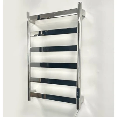 Manissa FALA Electric Stainless Steel Flat Tube Towel Rail 700mm High With Timer Mirror Polished Finish Energy Efficient (400mm x Steel)