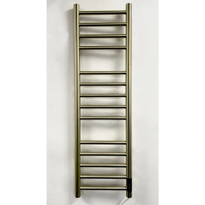 General description The Larne brushed brass multi bar electric towel rail is a practical addition for any bathroom or cloakroom. With 14 cross bars, it offers a larger heated surface for fast drying of towels. Utilizing dry electric heating technology, this towel rail provides an efficient way to dry towels without the need for liquid filling, as it features a cord heating element that heats the air inside the tubes, ensuring even heat distribution across the metal surface. The rail includes a built-in on/off switch and a 2/4 hour timer for easy control of its operation. Technical specifications Height: 1000mm Width: 300mm Material: 201 grade stainless steel Distance from wall to front of rail: 100mm Power cord length: 1m Temperature when covered with a towel: 65 degrees C IPX4 rated, suitable for Bathroom zone 2 Connect to a 3 amp fused spur 5-year guarantee on the frame 2-year guarantee for the element Installation The electric towel rail comes with all necessary components for