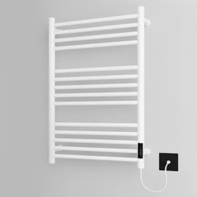 ManoManoGeneral description This Dry Electric towel rail offers an efficient solution for heating your bathroom. It features a cord heating element threaded through the bars, heating the air inside the rail and providing even warmth across the metal surface. With low running costs, this towel rail is designed to be energy efficient, costing approximately 50% less to operate than similar-sized liquid-filled models. For added convenience, it can be paired with an automatic timer switch to control operation times. Technical specifications Material: 201 grade stainless steel Working temperature when covered with towels: 65°C Electric cable length: 1m Guarantee: 2 years Fixings included Installation Lightweight design for easy installation Can be secured to most walls, including mobile homes and temporary structures