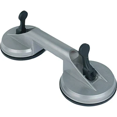 Double vacuum Weight 210.0 grams Suction lifter with two heads color gray Hopper force 70 kg Package size 8.7 L x 32.5 H x 12.4 W cm For use on smooth, air-resistant (clean and grease-free) materials such as glass, sheet metal, tiles and plastics